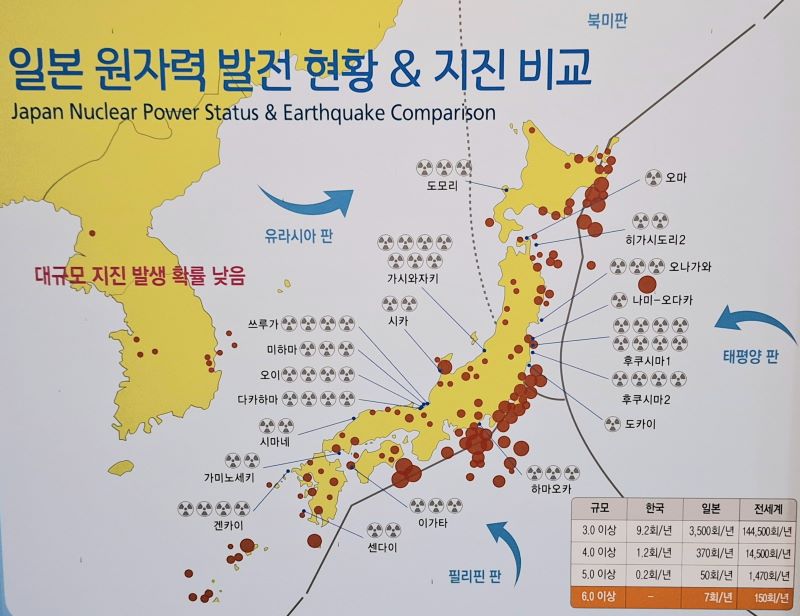 Südkorea setzt traditionell stark auf die Atomenergie. Es werden 24 Reaktorblöcke an 5 Standorten betrieben. Die Standorte Kori und in unmittelbarer Nachbarschaft Saeul befinden sich an der Südost-Küste zwischen den Großstädten Ulsan und Busan: